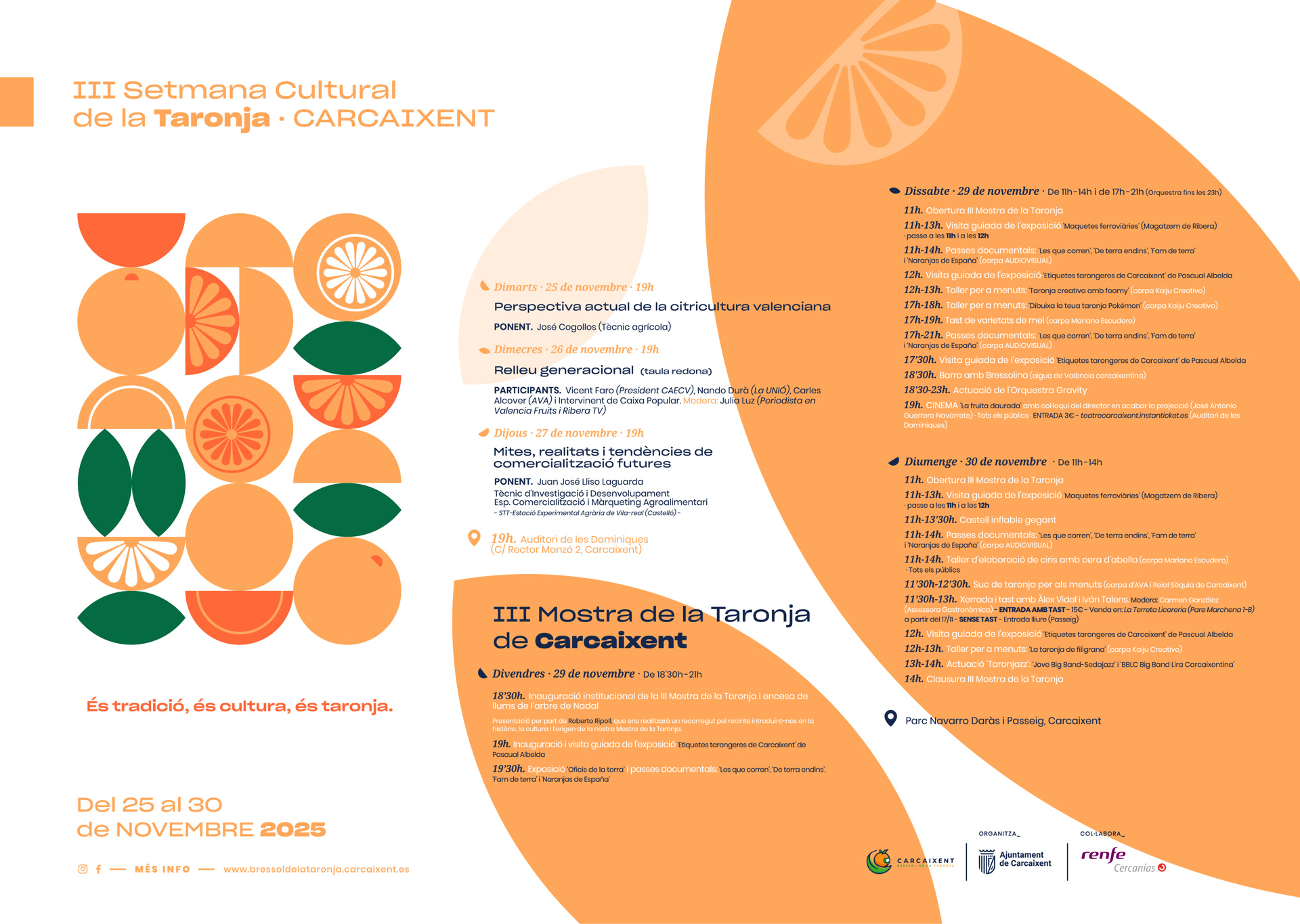 Exposiciones, documentales, stands de empresas del sector, charlas, catas y talleres transformaron Carcaixent en un espacio donde tradición y creatividad se encuentran. Una naranja que no solo se degusta, sino que se vive, se comparte y nos recuerda nuestras raíces mientras inspira el futuro de nuestra tierra.